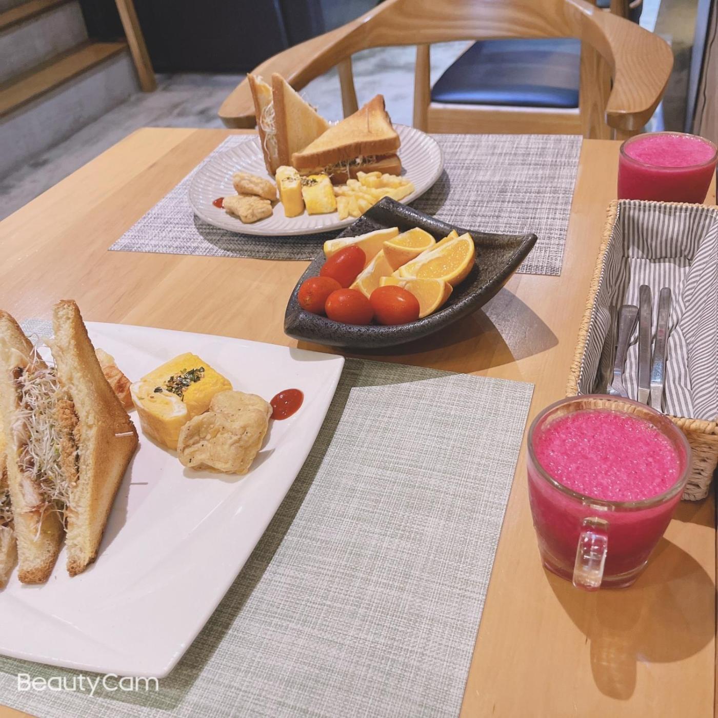 The breakfast offers à la carte, American options and fruits and juice are being served.
