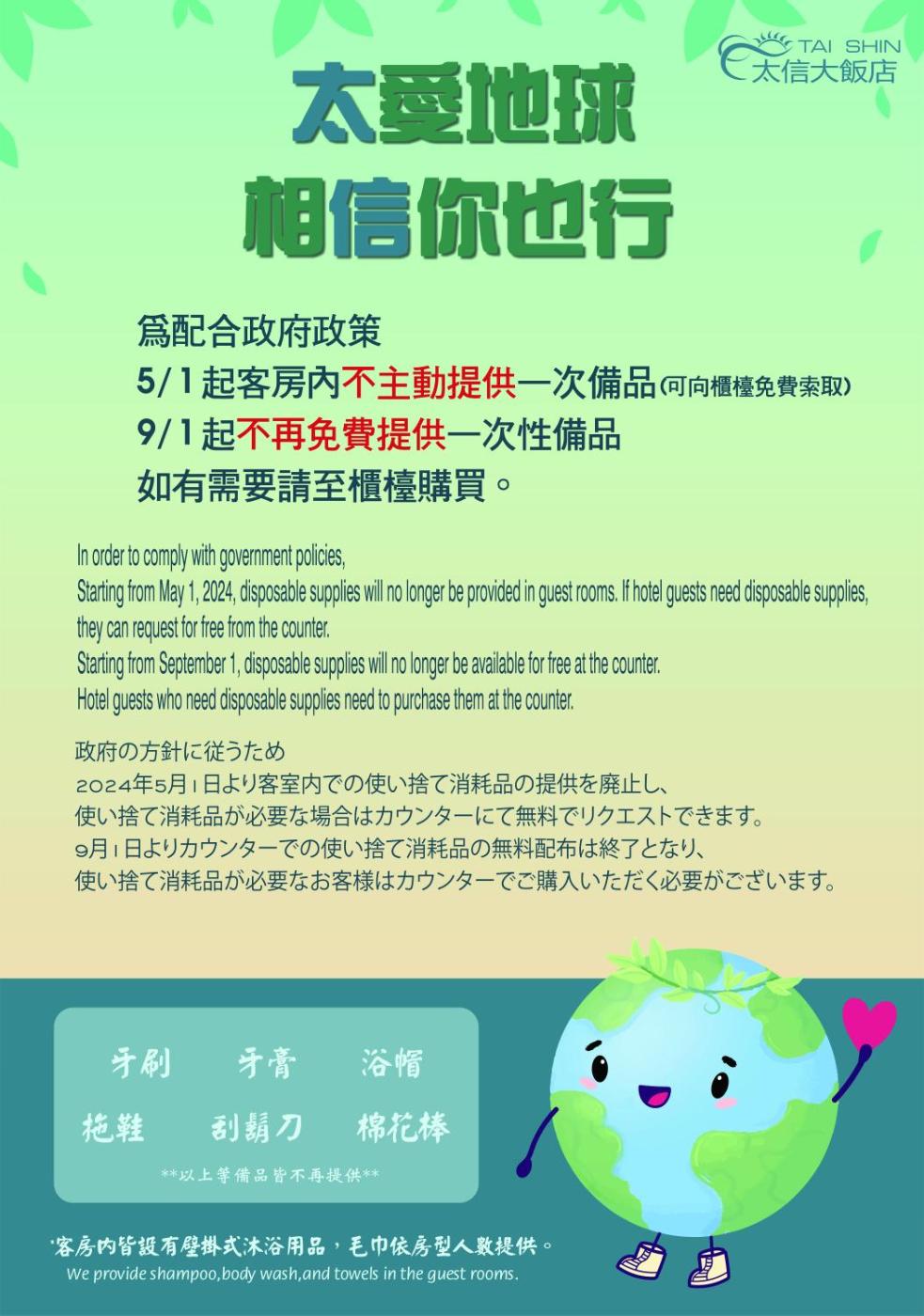 At Tai Shinu Hotel, guests can utilise the business centre facilities. Luggage storage is available and self-service laundry machines are provided for guests’ use.