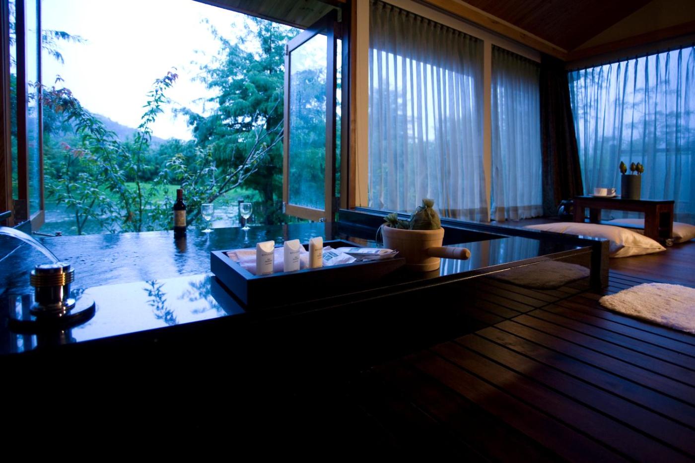 Deluxe Double or Twin Room with Lake View. This twindouble room features a sauna and a fireplace. The spacious twindouble room offers air conditioning, a washing machine, a terrace with lake views as well as a private bathroom boasting a bath. The unit has 2 beds.