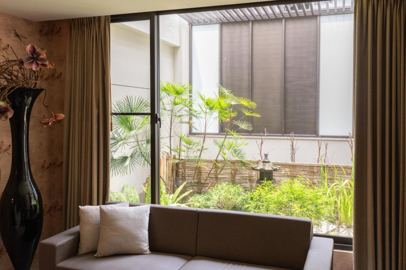 Queen Room with Garden View. The spacious double room features air conditioning, a wardrobe, as well as a private bathroom boasting a walk-in shower and a bath. The double room provides a flat-screen TV, an electric kettle, a sofa, heating as well as garden views. The unit has 1 bed. ;