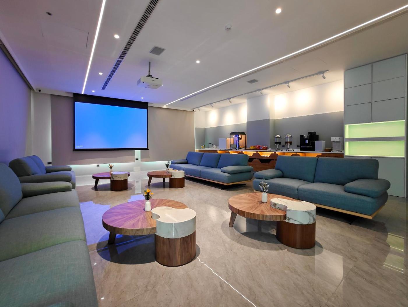 Guests can also relax in the shared lounge area.