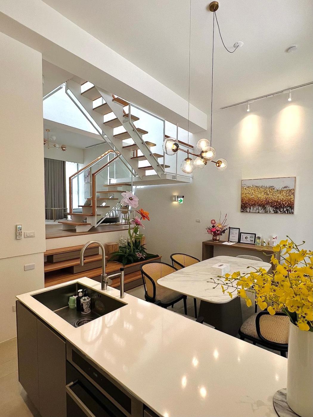 The homestay has 3 bedrooms, 3 bathrooms, bed linen, towels, a flat-screen TV with streaming services, a dining area, a fully equipped kitchen, and a terrace with garden views. The air-conditioned unit at the property features a bidet and a dressing room. This homestay is allergy-free and non-smoking.
